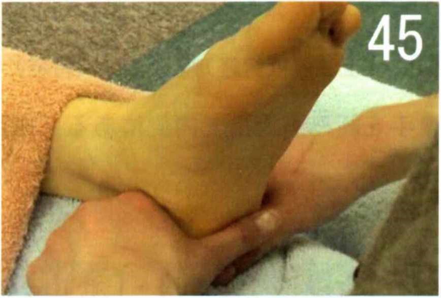◆外踝の周りを両拇指でさすり上げます。