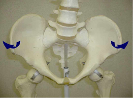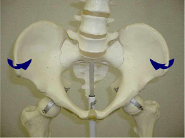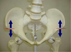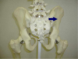 ※左右の上後腸骨棘の位置が同じかどうかを調べる。反対より上に触れるようなら腸骨の内旋を疑います。逆に下に触れるようなら腸骨の外旋を疑います。