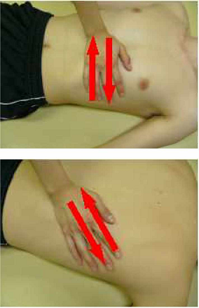 腹部を一指禅法、摩法で緩める。