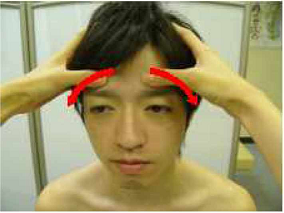 ①両手を並列して、掌心を術者の方に向けて、示指の中節骨(または指節間関節)の橈側縁と母指端で皮層を挟み提捏します。