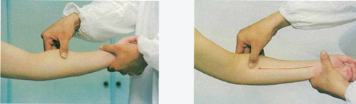 経筋捏法の手技は、軽い刺激、向心性、リズムよく、順方向の経絡の特徴を備えています。このため経筋捏法は「補」の手技なのです。