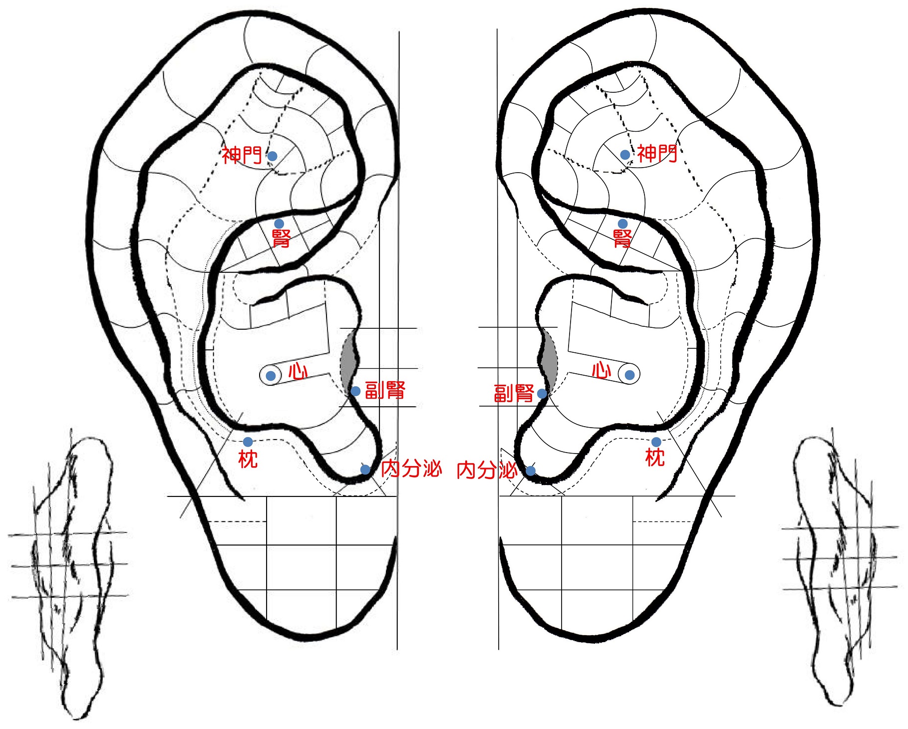 腎炎、夜尿症、むくみ、生理不順、閉経、不妊症、神経衰弱、自律神経失調症、記憶力減、腰痛、リマチ、耳鳴り、聰力低下、円形脱毛症慢性喘息、冷え性 - 副腎